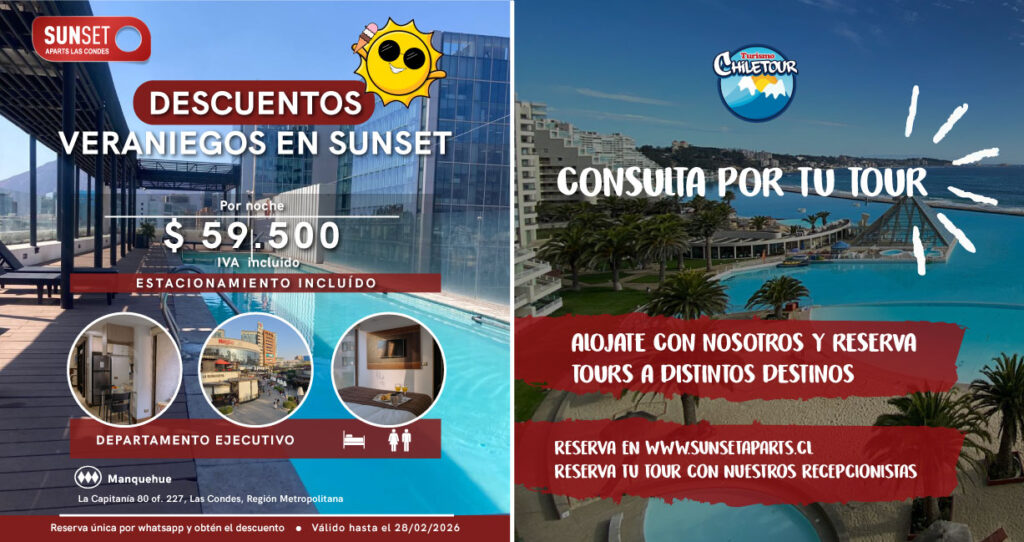 Manuel González30/01/2026Trustindex verifica que la fuente original de la reseña sea Google. Todo muy bien, muchas gracias Juan Pino18/01/2026Trustindex verifica que la fuente original de la reseña sea Google. Deseo destacar que Sunset es una empresa seria y profesional. El depto fue tal cual se ofreció. Muy bien ubicado y limpio. El encargado de Sunset muy cordial y atento a cualquier eventualidad, mis felicitaciones a él y el equipo de Sunset. Totalmente recomendable el lugar. Gracias. Lourdes Miranda06/01/2026Trustindex verifica que la fuente original de la reseña sea Google. Muy buena ubicación, cerca del metro, mall, farmacias, lugares para comer Ricardo VM19/12/2025Trustindex verifica que la fuente original de la reseña sea Google. Muy buena ubicación y un contacto igualmente bueno con su personal Mayra Ovando Vergara14/12/2025Trustindex verifica que la fuente original de la reseña sea Google. El departamento y la ubicación son excelentes, no es la primera vez que nos quedamos aquí y siempre ha sido una muy buena experiencia. Sin embargo, en esta ocasión no se nos informó previamente que el servicio de aseo ya no se realiza a diario, sino cada 5 días, por lo que tuvimos que encargarnos nosotras del aseo durante la estadía y además comprar confort. Aun así, queremos destacar especialmente el excelente trabajo de la señora Gloria, quien nos entregó el departamento en impecables condiciones. Su labor fue muy valorada.
