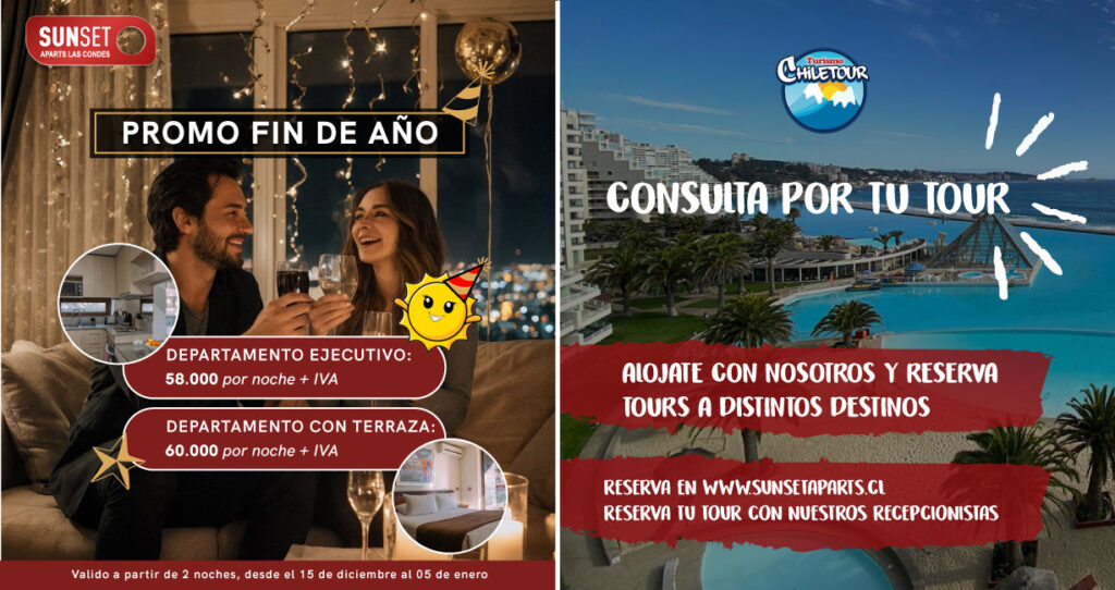 Claudio Eugenio Stuardo Escobar27/09/2025Trustindex verifica que la fuente original de la reseña sea Google. Muy buen apart hotel. Expedito servicio. Buenas intalaciones. Muy limpio Maca Pérez22/09/2025Trustindex verifica que la fuente original de la reseña sea Google. Quería reservar una habitación y me rechazaban la llamada Daniela Cornejo16/09/2025Trustindex verifica que la fuente original de la reseña sea Google. La ubicación es buena, pero el servicio deja que desear, problemas con estacionamiento, y no contesta el número de emergencia. Felix Sastoque15/09/2025Trustindex verifica que la fuente original de la reseña sea Google. Excelente servicio y amabilidad del equipo de SUNSET Aparts Luis Chavez14/09/2025Trustindex verifica que la fuente original de la reseña sea Google. Todo muy bien muy comodos los dptos.